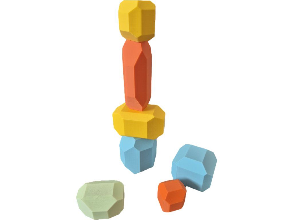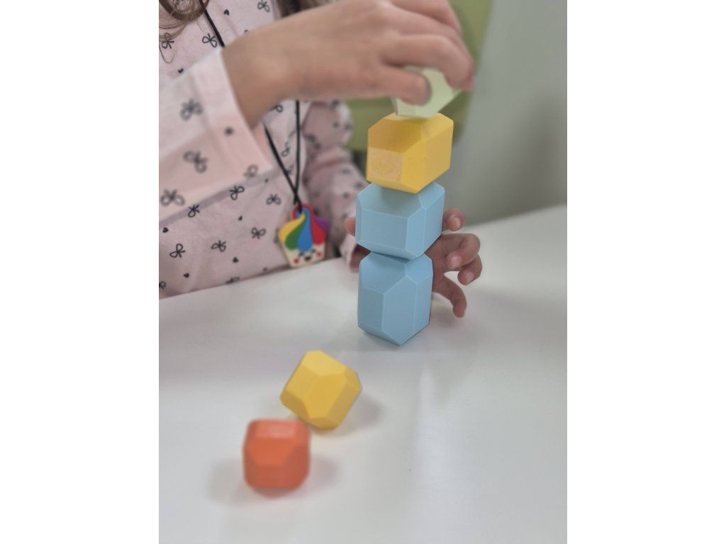 Při hře děti experimentují s rovnováhou, staví věže, tvoří vlastní konstrukce nebo si jen užívají volnou kreativní hru. Kameny jsou příjemné na dotek a svou jednoduchostí podporují fantazii bez zbytečného rušení.