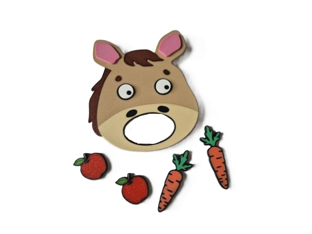 Obsah balení: 1x krmící hlava koníčka, 2x jablíčko a 2x mrkev