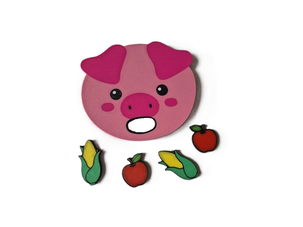 Obsah balení: krmící hlava prasátko, 2x jablíčko, 2x kukuřice