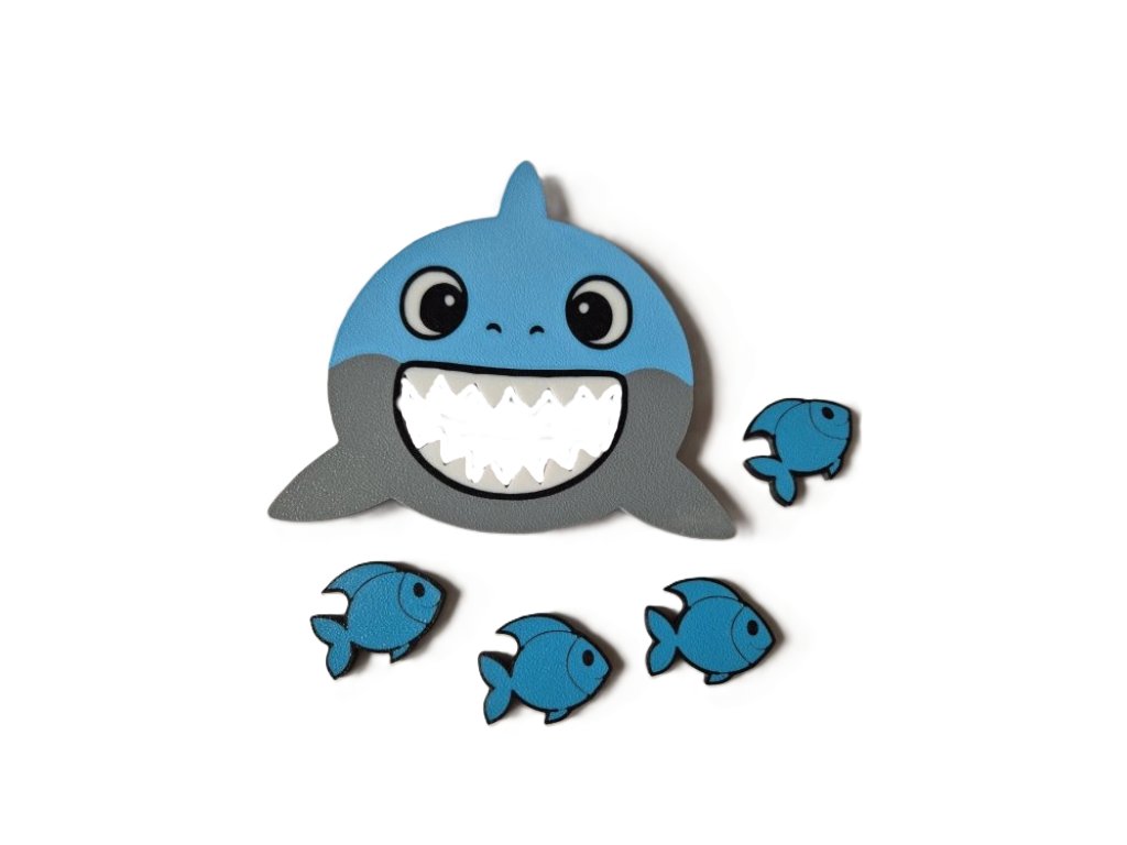 Balení obsahuje: krmící hlava žraloka, 4x ryba