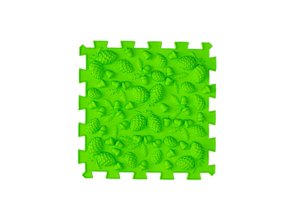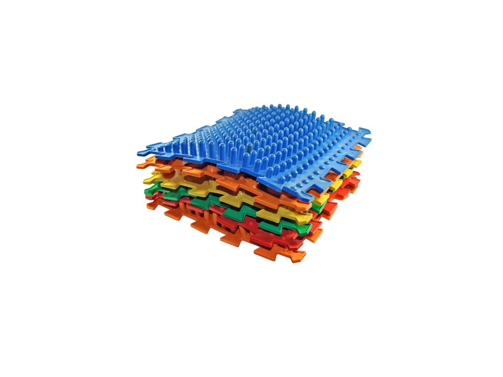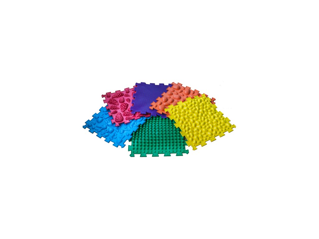 Všechny díly puzzle jsou vyrobeny ze stejného materiálu, který je bezpečný, hypoalergenní a neobsahuje žádné škodlivé příměsi. Díky rozdílným texturám působí každý díl trochu jinak. Tráva, Mušle, Oblázky a Houby patří mezi měkčí puzzle. Věže, Ježci, Mořští živočichové a Žaludy mají střední tvrdost. Pyramida, Bodlinky, Lotos a Šišky jsou naopak pevnější povrchy. Kombinace různě tvrdých modulů vytváří nejlepší podmínky pro masáž chodidel, trénink klenby i rozvoj senzorické integrace.
