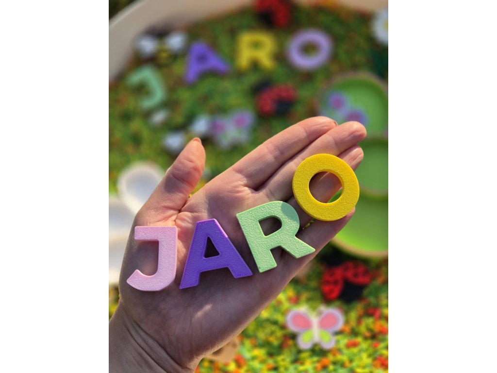 Barevná písmenka s nápisem JARO jsou skvělým doplňkem pro jarní smyslové aktivity, hraní i první seznamování s písmenky. Děti mohou písmena skládat, poznávat jejich tvary a vytvářet vlastní jarní scénky.