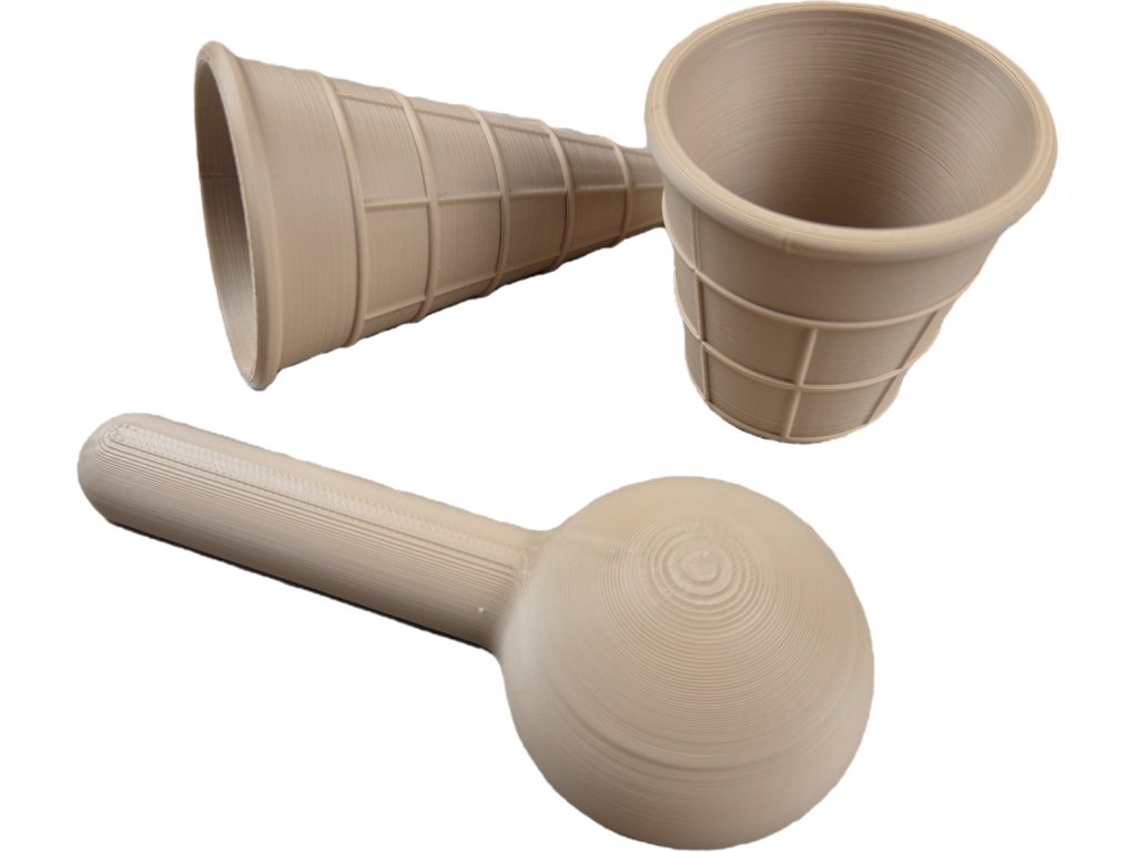 Tato sada kornoutků pro výrobu zmrzliny je ideální pro hrátky s kinetickým pískem nebo dalším sypkým materiálem. Díky jeho rozměrům a váze je ideální do dětské ručičky.
