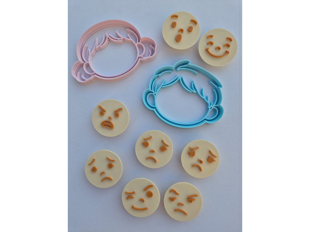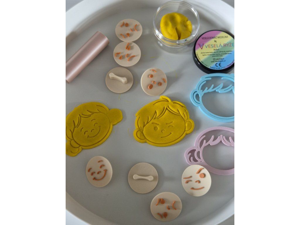 Sada obsahuje vykrajovátka obličeje holčičky a chlapečka a k tomu 8 různých výrazů emocí, které mohou děti skládat, kombinovat a pojmenovávat.