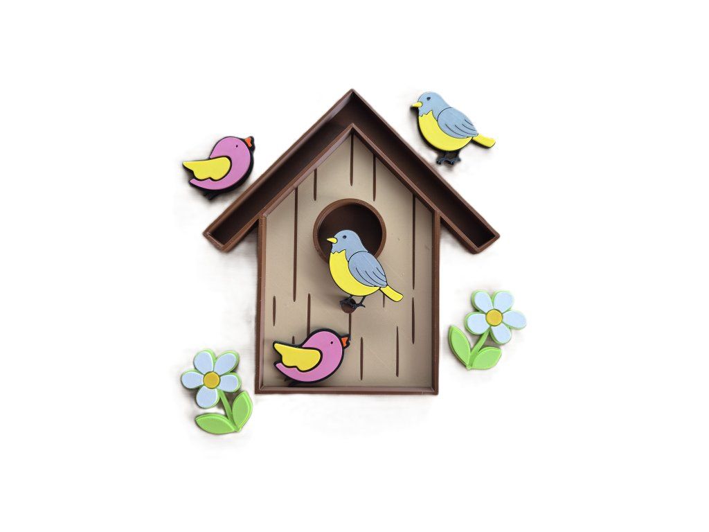 Děti mohou ptáčky vkládat do budky a zase je vysypávat ven – jednoduchá aktivita, která přirozeně rozvíjí dětské dovednosti a zabaví na dlouhou dobu. Díky veselým barvám a milému designu si hru okamžitě zamilují.