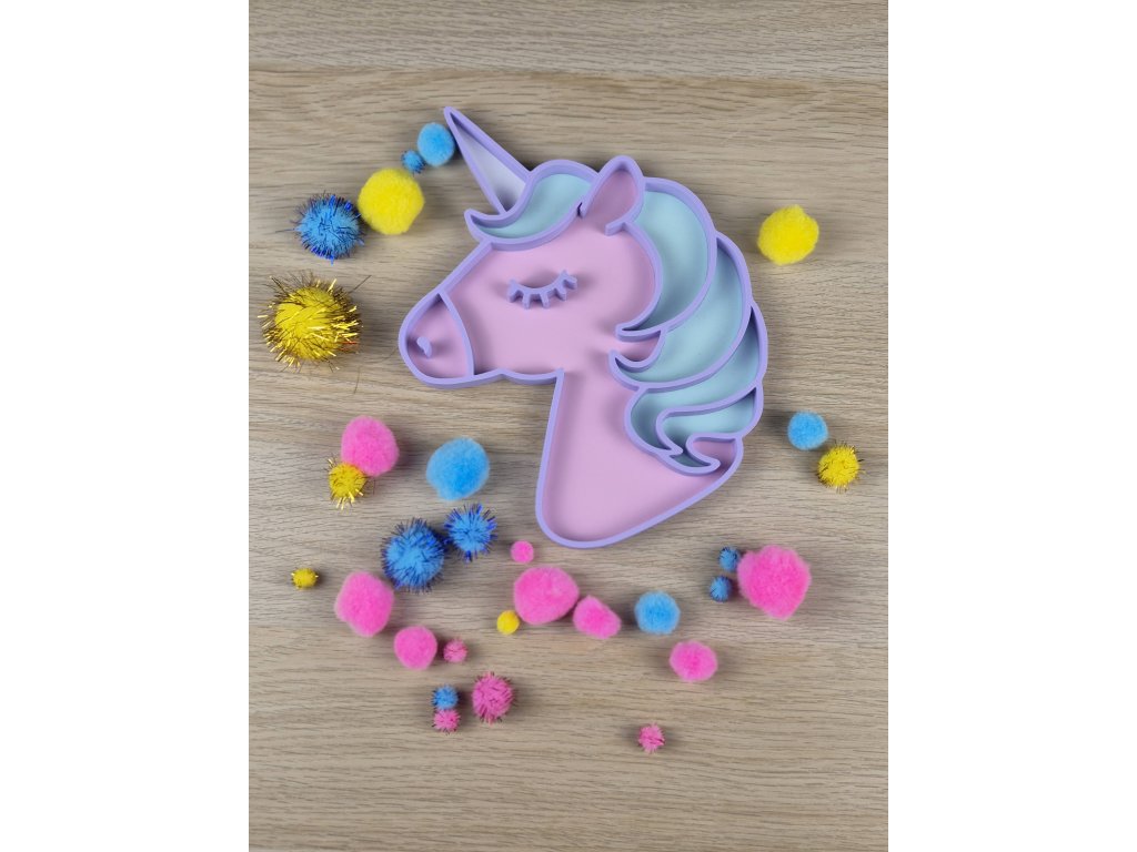Tácek sloužící na smyslové hraní s motivem unicorna.