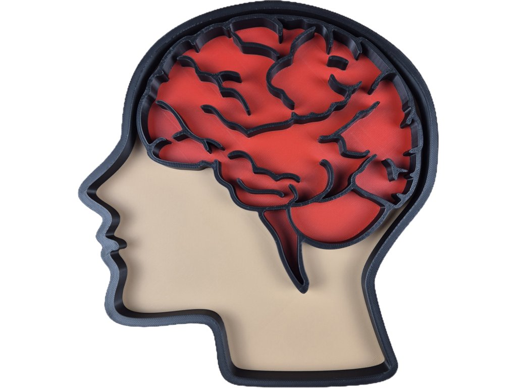 Tácek sloužící na smyslové hraní s motivem hlavy a mozku.